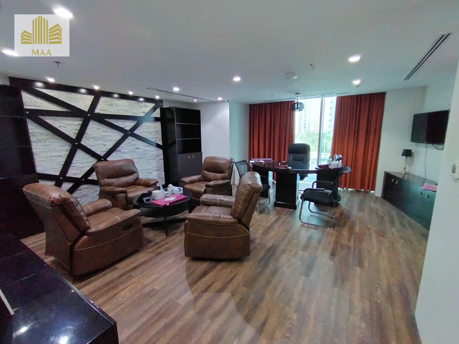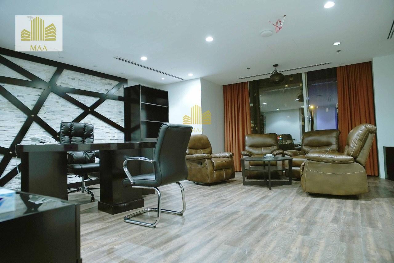 This elegant office space, which spans a generous area, is fully fitted and furnished, complete with modern fixtures and fittings. Floor-to-ceiling windows flood the interior with natural light, while offering stunning views of the shimmering waters and iconic skyline.